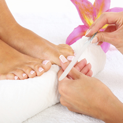 The pedicure is a pedicure performed by a professional hand. Particular attention is paid to the cutting and filing of the toenails, the removal of excess cornea and the creaming of the feet.